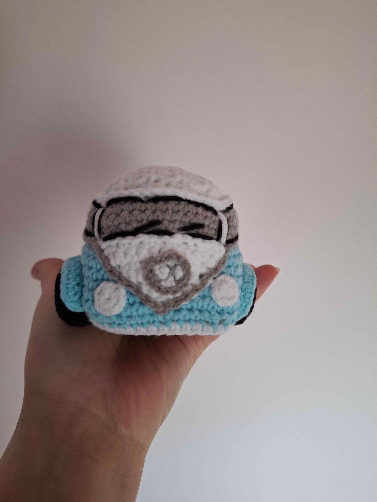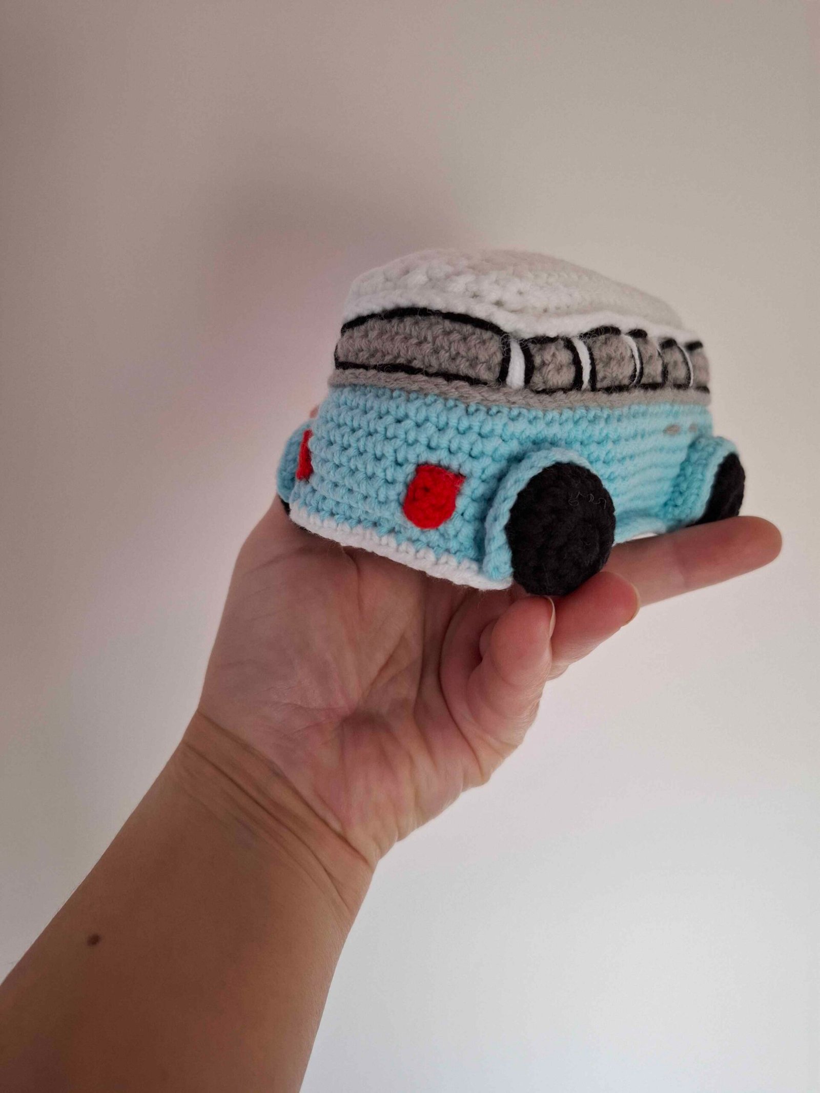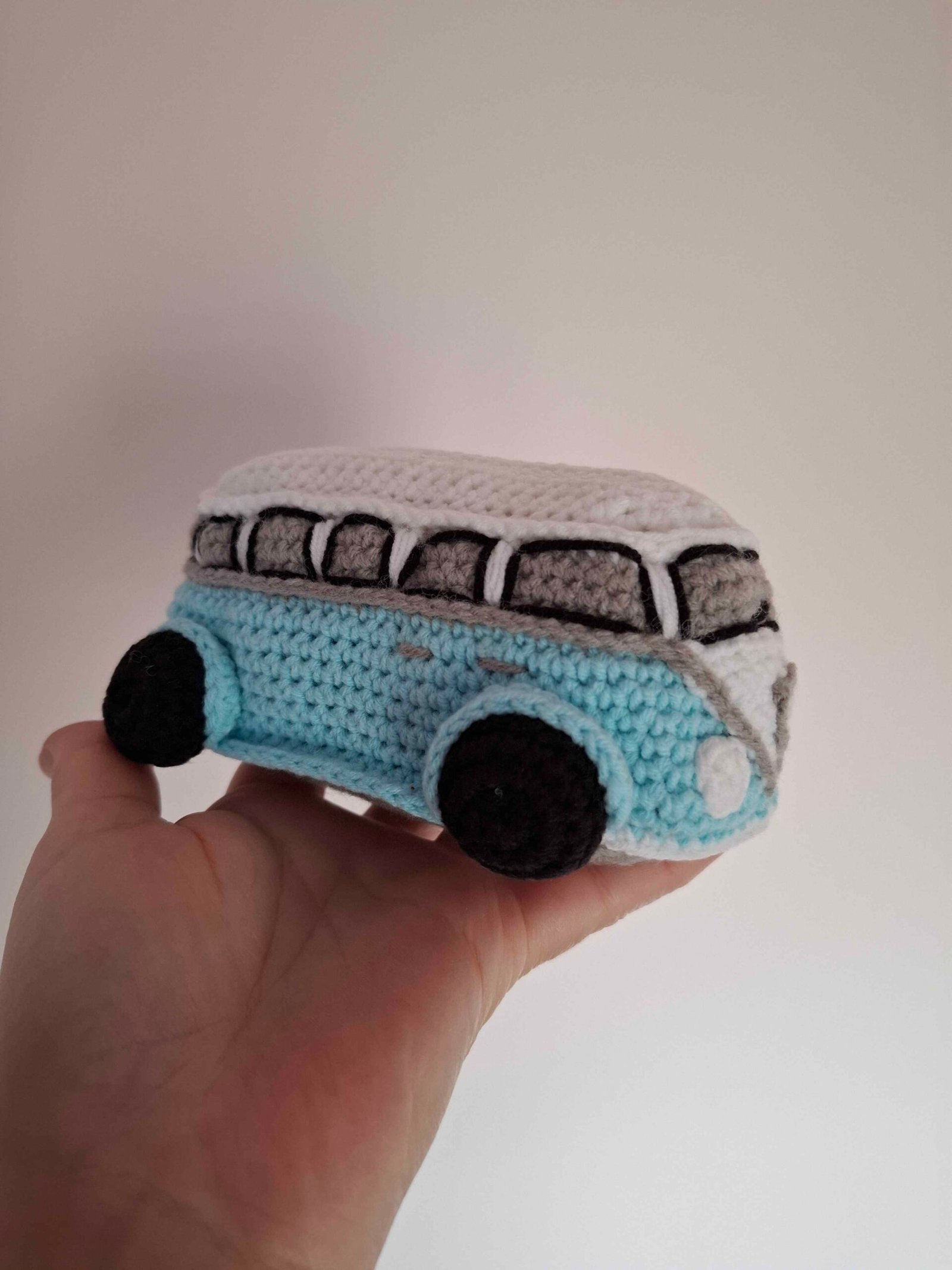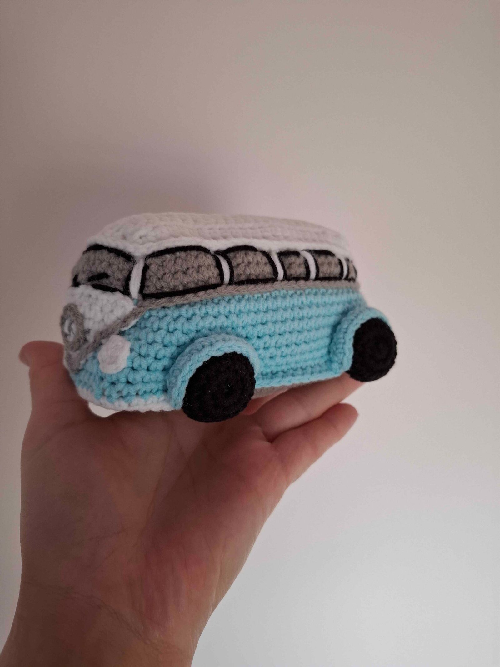 Handmade crocheted, cute, soft and without small details bus. Suitable for the smallest ones who like cars. They can have fun playing and not get hurt. Safe and cute, one-of-a-kind handmade crocheted bus. Length 14cm, width 10cm, height 8cm.