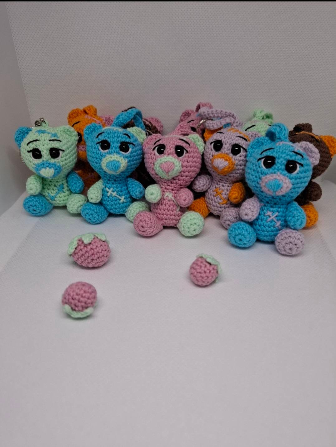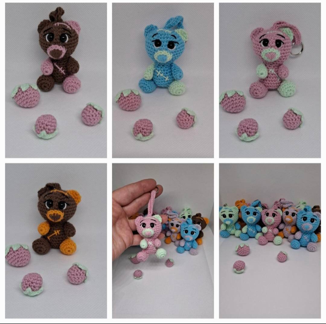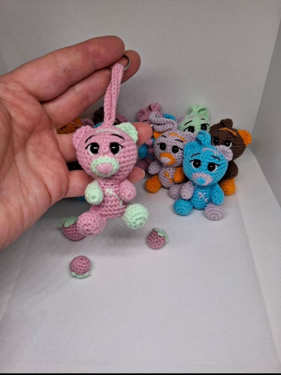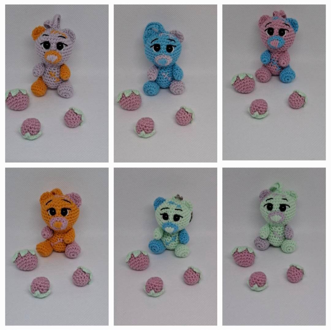 Handmade crocheted teddy bears - key chains. Cute bears are ready to protect your keys, backpack. Small, only 5.5cm, colorful bears. Cute accessory, unique pendants.