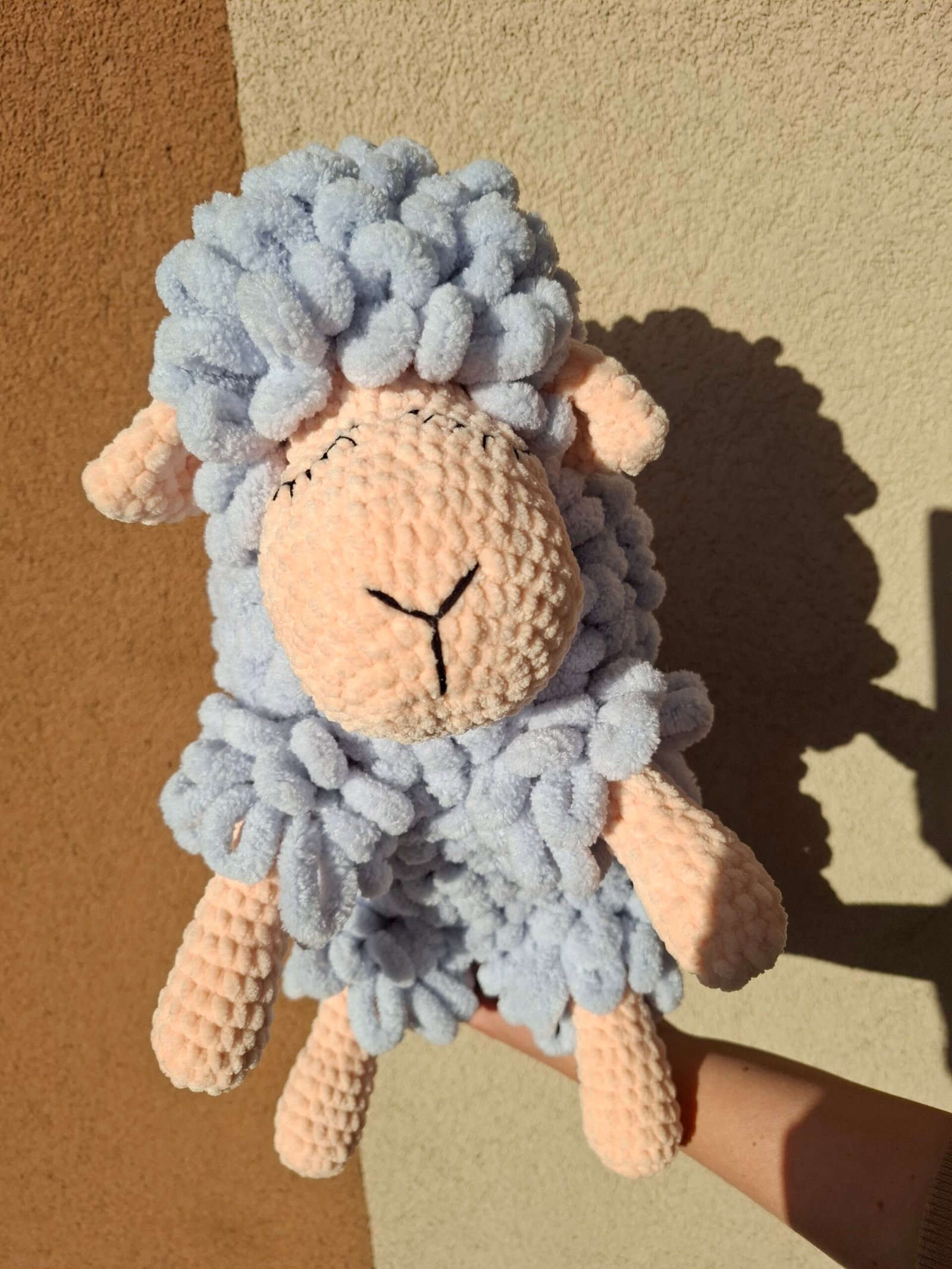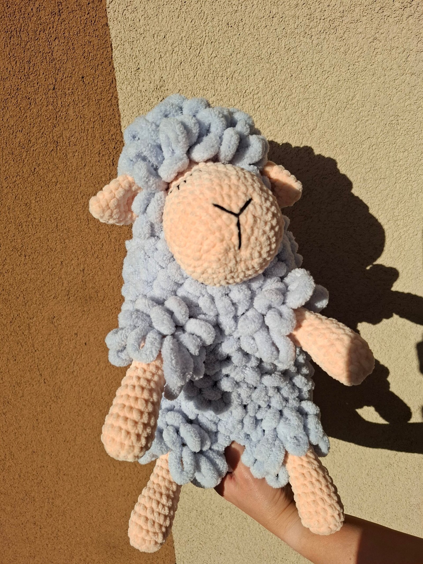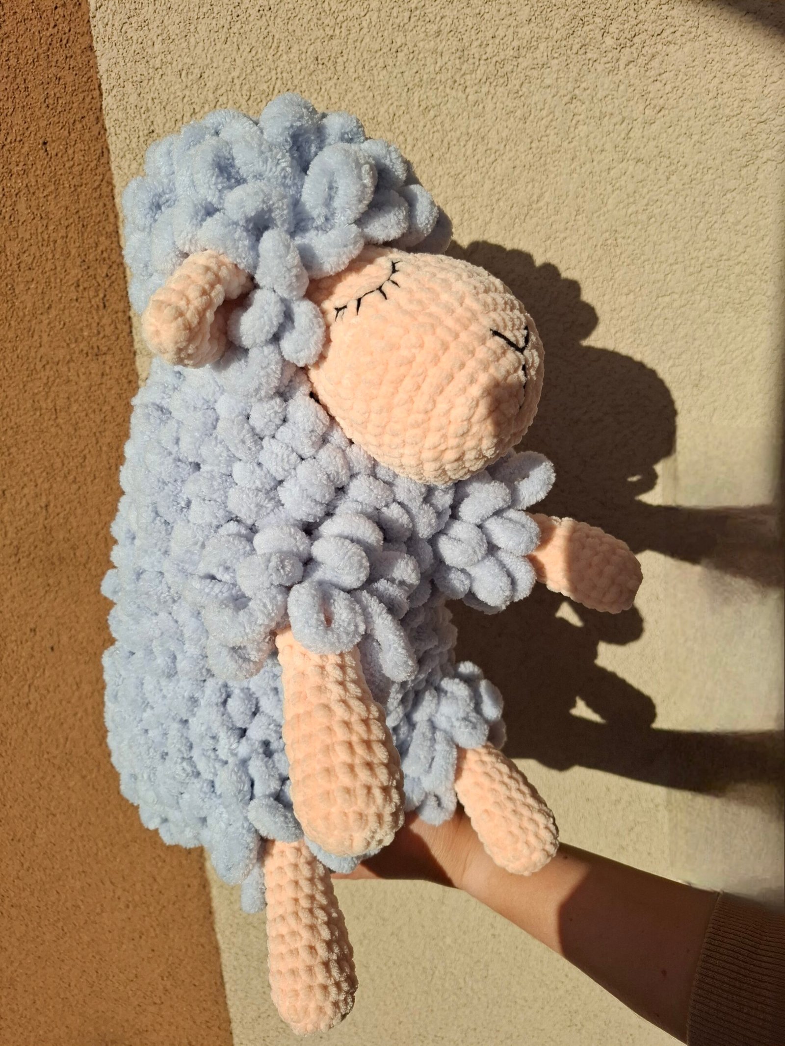 Šviesioji avytė – tai švelnumo kupinas, rankų darbo žaislas, sukurtas su meile. Jos kūnelis purus ir švelnus, o pastelinių spalvų derinys suteikia dar daugiau jaukumo. Miegančios akytės pavers šią avytę puikiu miego palydovu ar raminančia dovana mažyliui.
