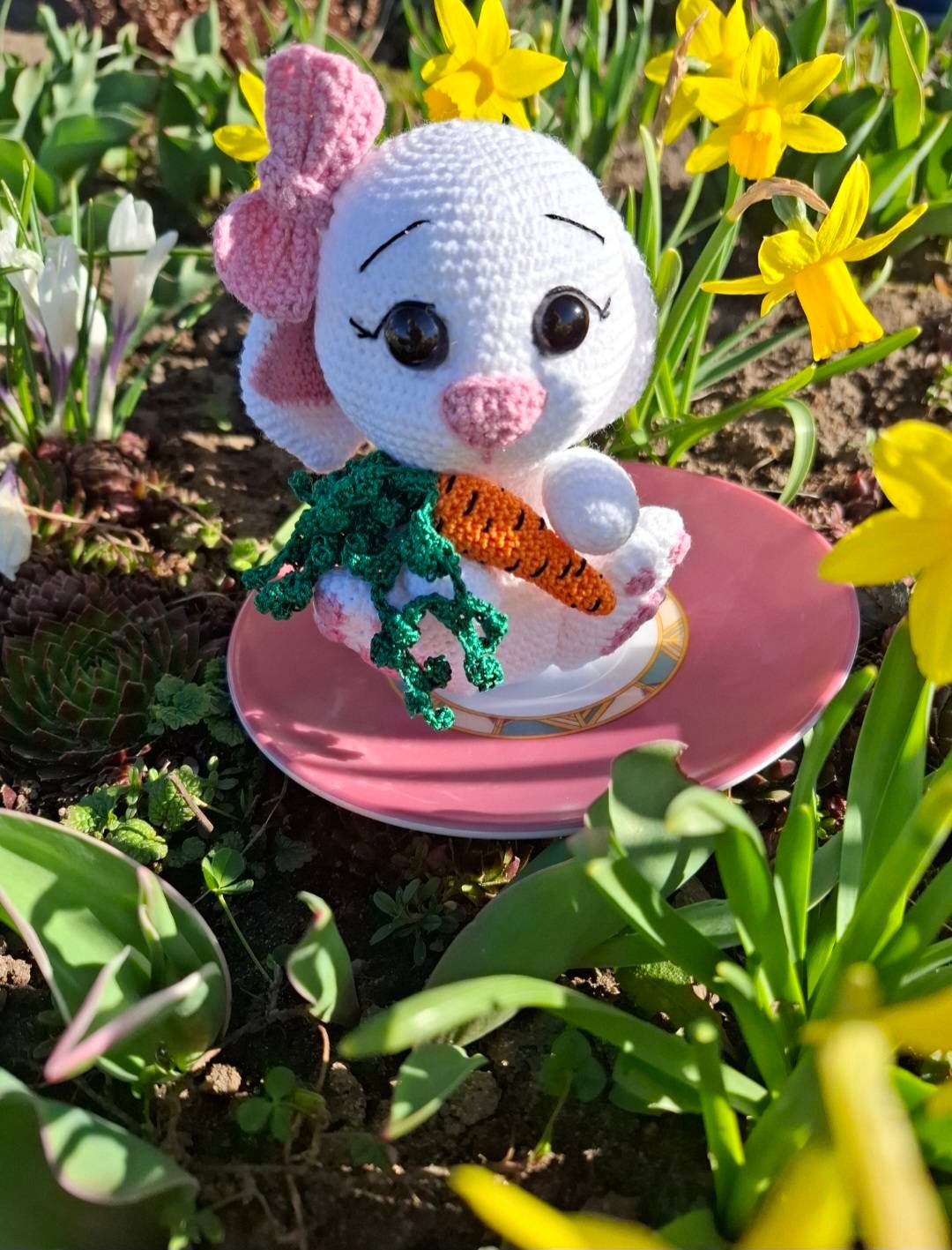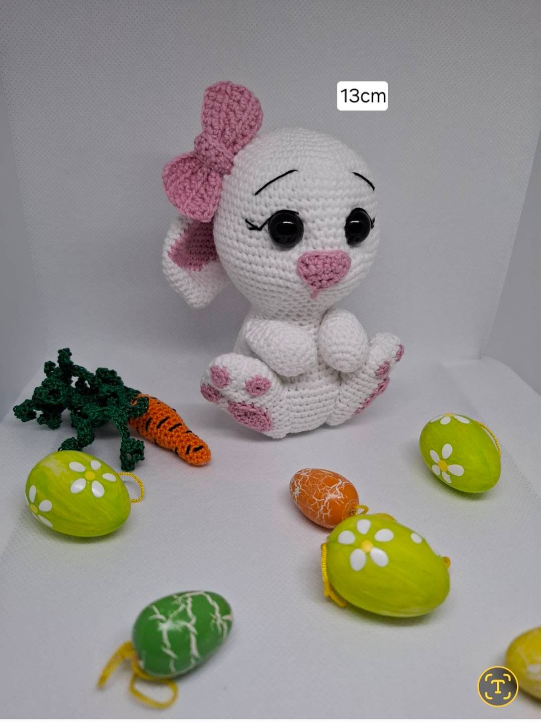 Mielas rankų darbo nertas – Kiškutis 13cm.