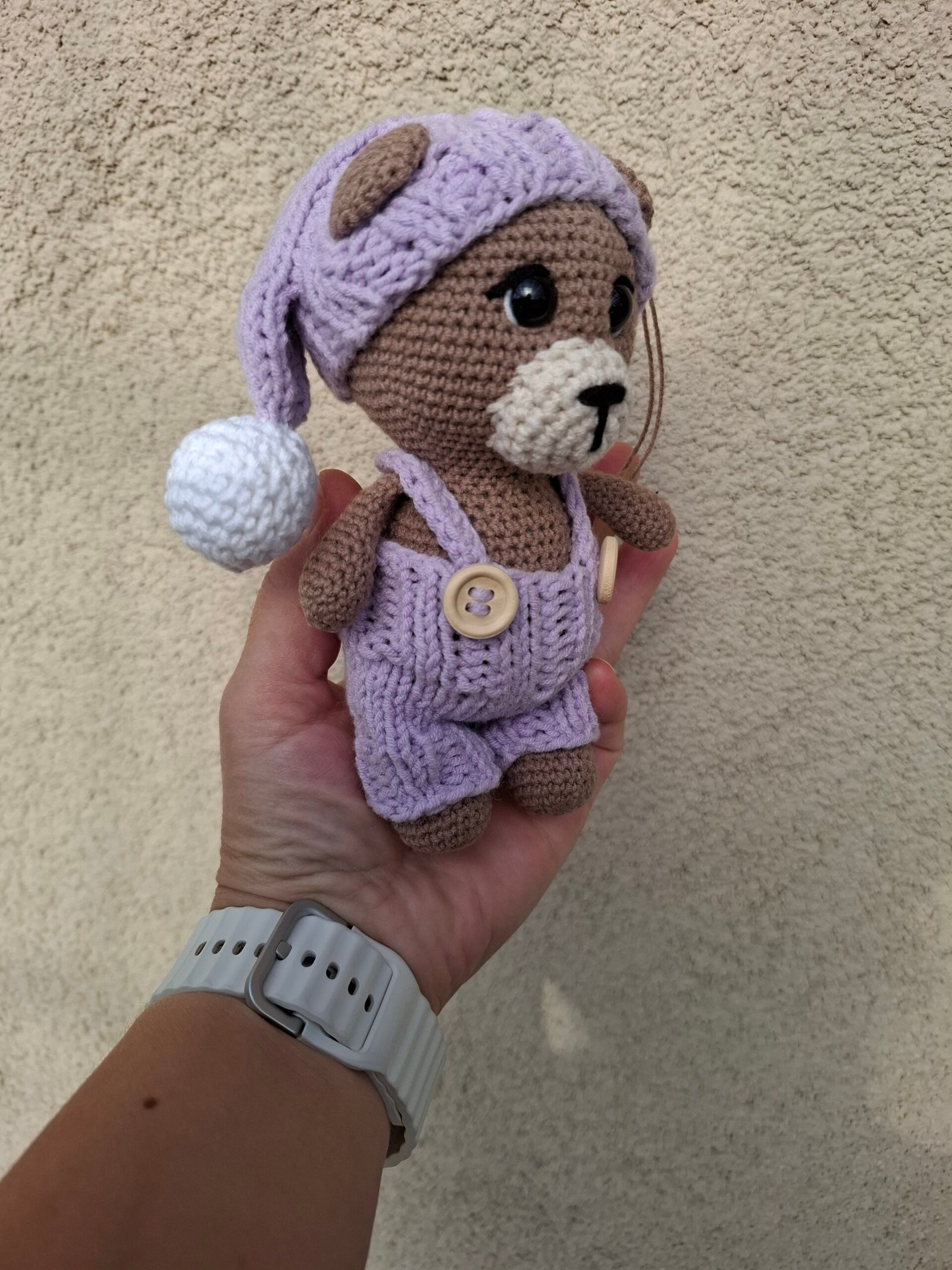 Mielas rankų darbo nertas meškutis ieško draugo. Ieškote kuo nustebinti mažąją princą, tai nuostabi maža dovanėlė su meile nertas meškutis pradžiugins jūsų mažąjį. Vienetinis, nes antros tokio identiško nenunersiu vistiek kokia detalė skirsis, nes tai rankų darbas. Jis nedidukas 14cm tad gali lydėti, kad ir į pasaulio kraštą, į sapnų karalystę, kelionę. Puikus draugas kuri gali jūsų vaiką visur lydėti, patogu mažytėms rankytėms laikyti, nes jis – mažutis meškutis. Akys saugiai užsegtos iš vidaus.