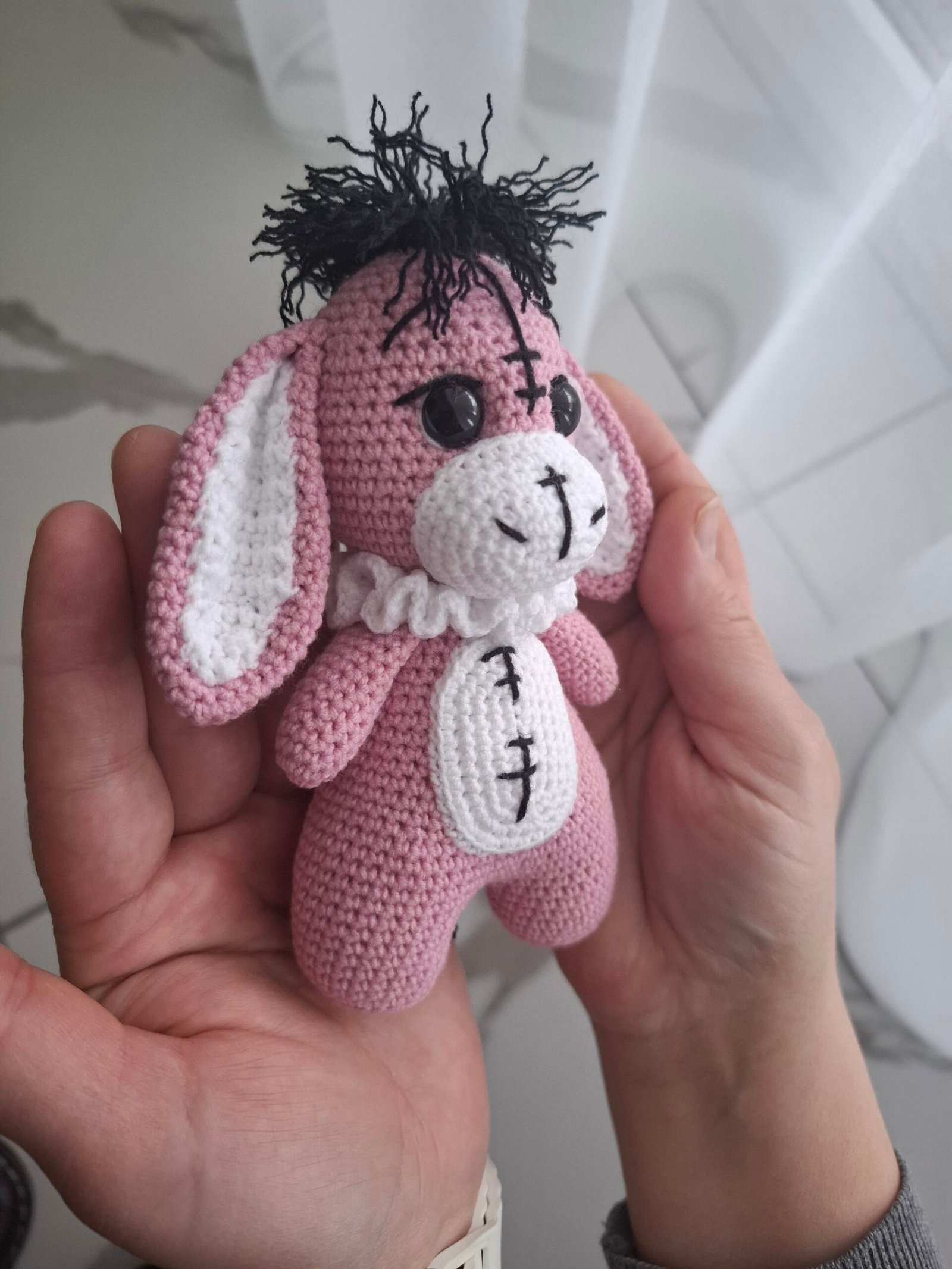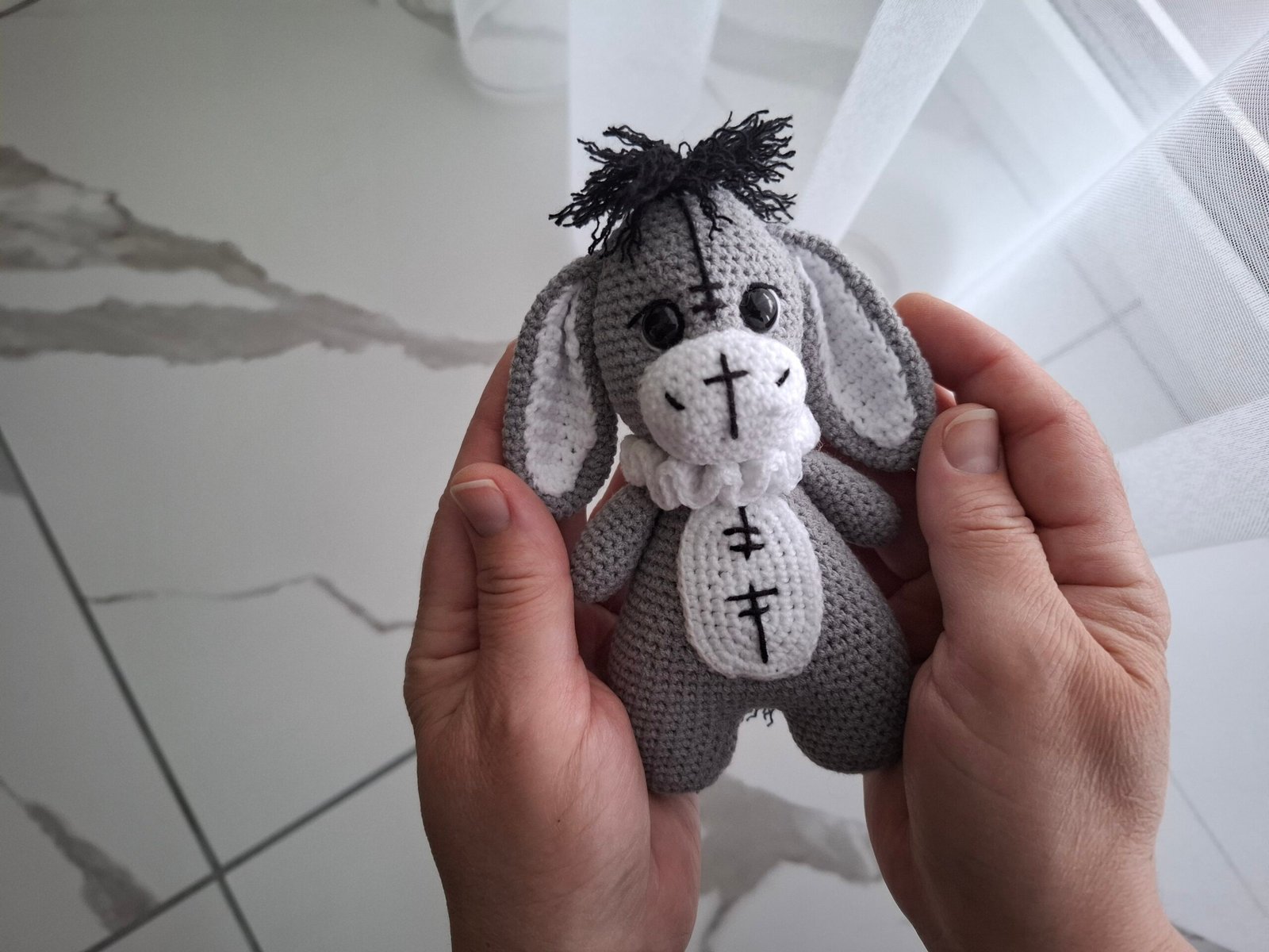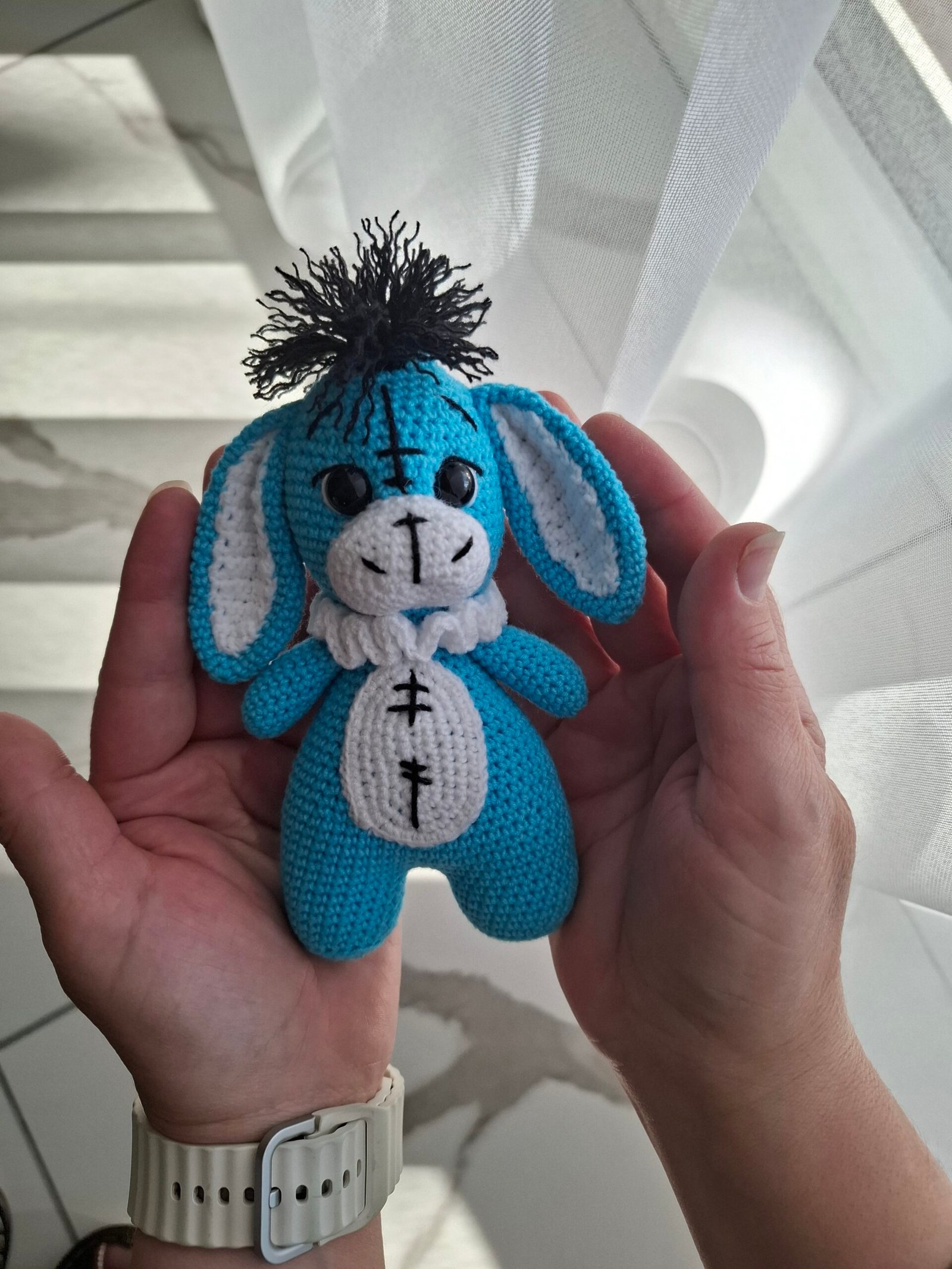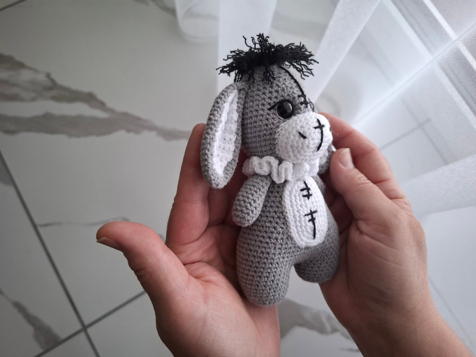 Mažas rankų darbo draugas,bet pilnas jaukumo, telpantis delne 14cm. Kiekviena detalė sukurta su meile – nuo išraiškingų akyčių iki mielų nukarusių ausyčių. Šie mieli asiliukai, meilučiai nedideli tik 14cm tad vaikučiai gali su jais keliauti į sapnų karalystę, vežtis kelionės,nes juk linksmiau turint savo mažą draugą šalia.